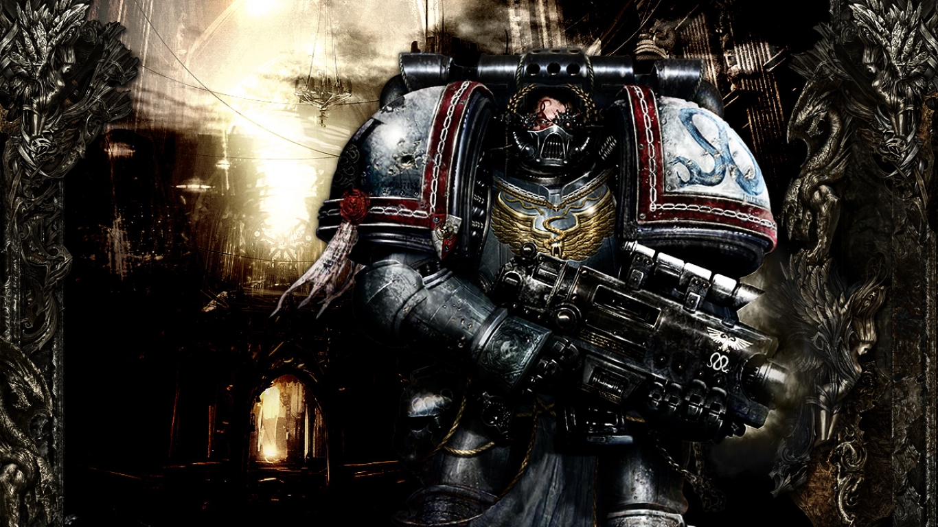 Description: A man in a suit with a machine gun in his hand and a helmet on his head and a sword in his hand.