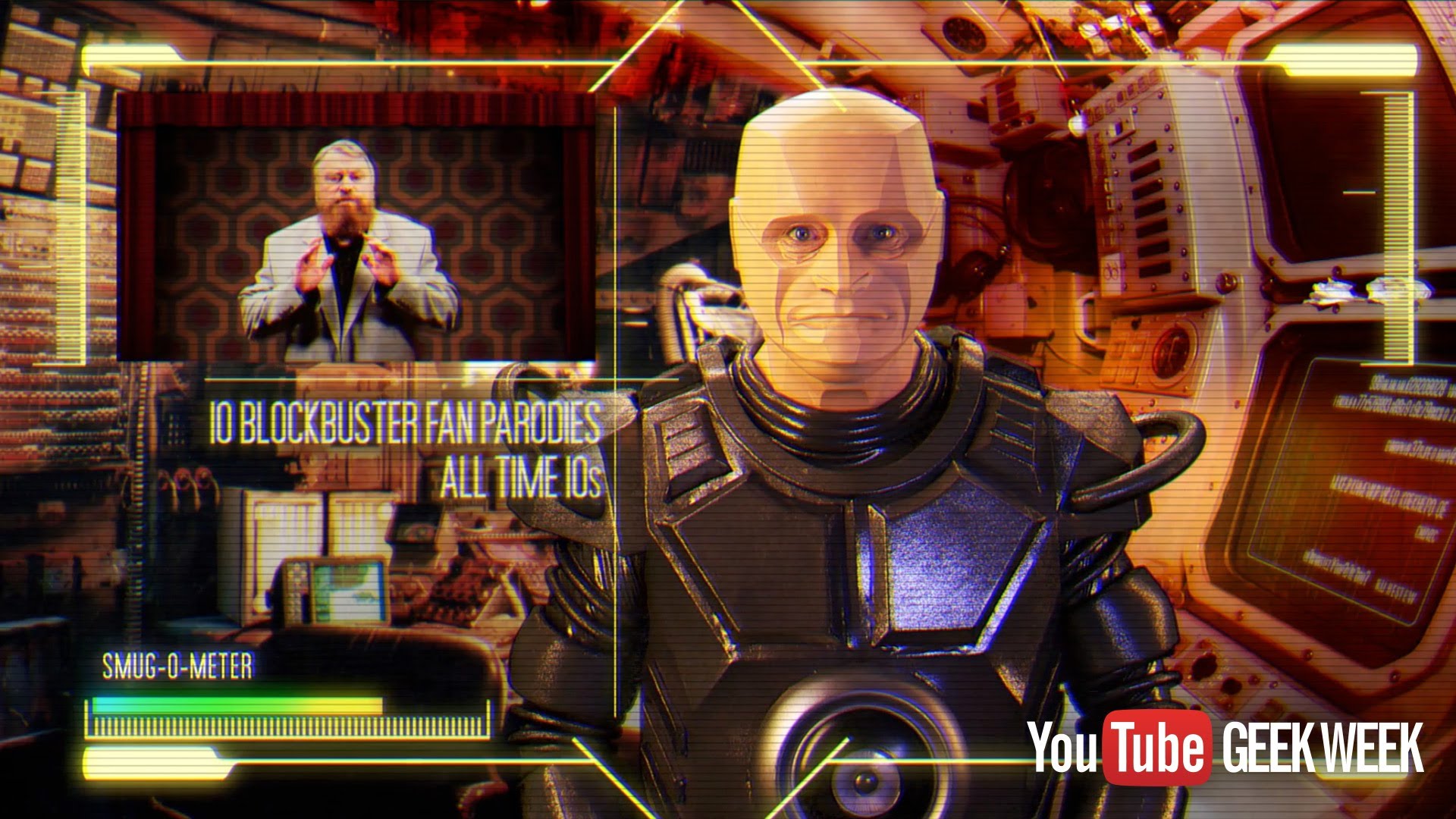 Description: A man in a suit and a microphone in a room with a television screen and a brick wall with a picture of a man in a suit and a microphone.