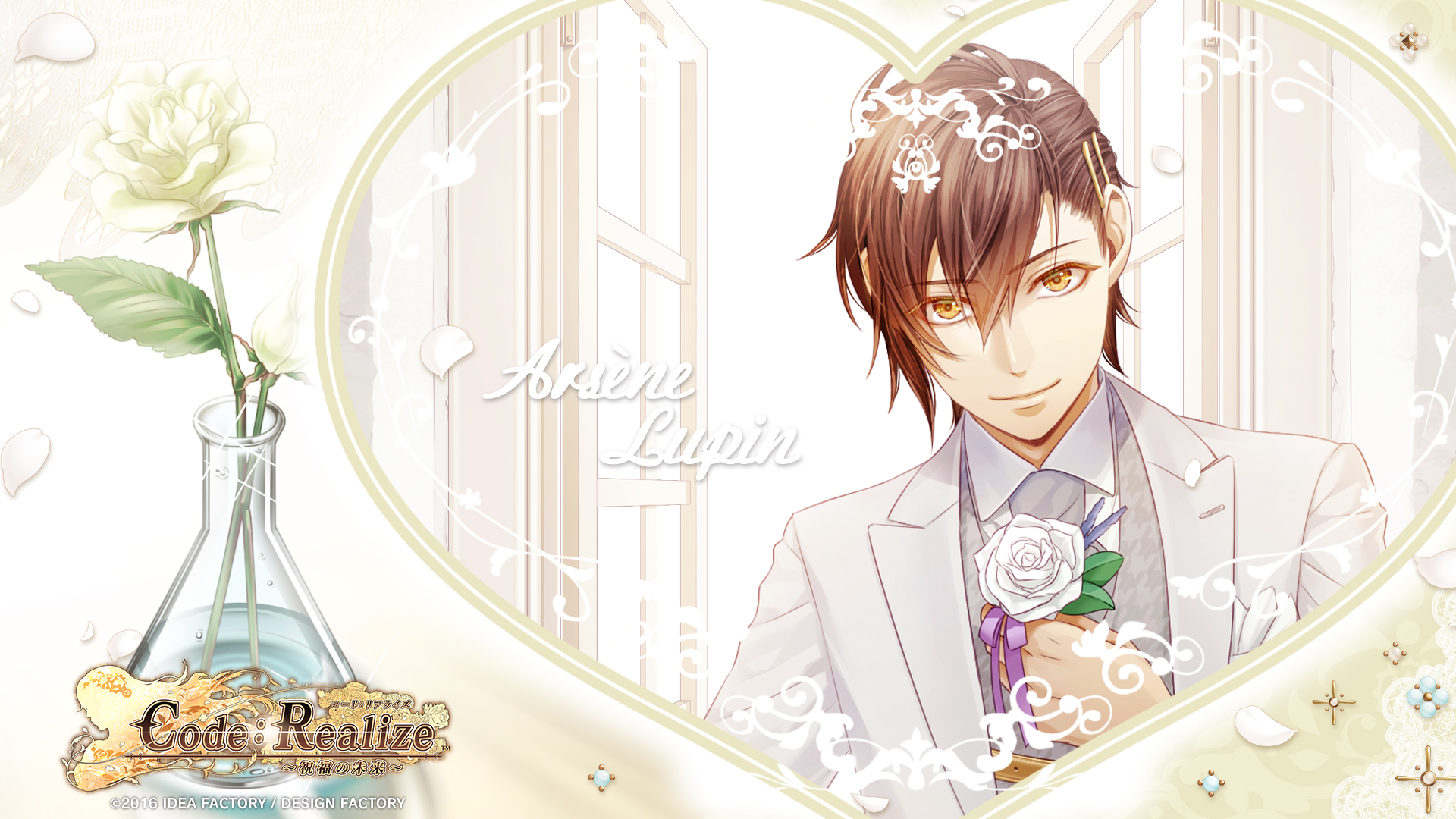 Description: A man in a suit holding a rose in a vase with a heart shaped frame behind him that says.