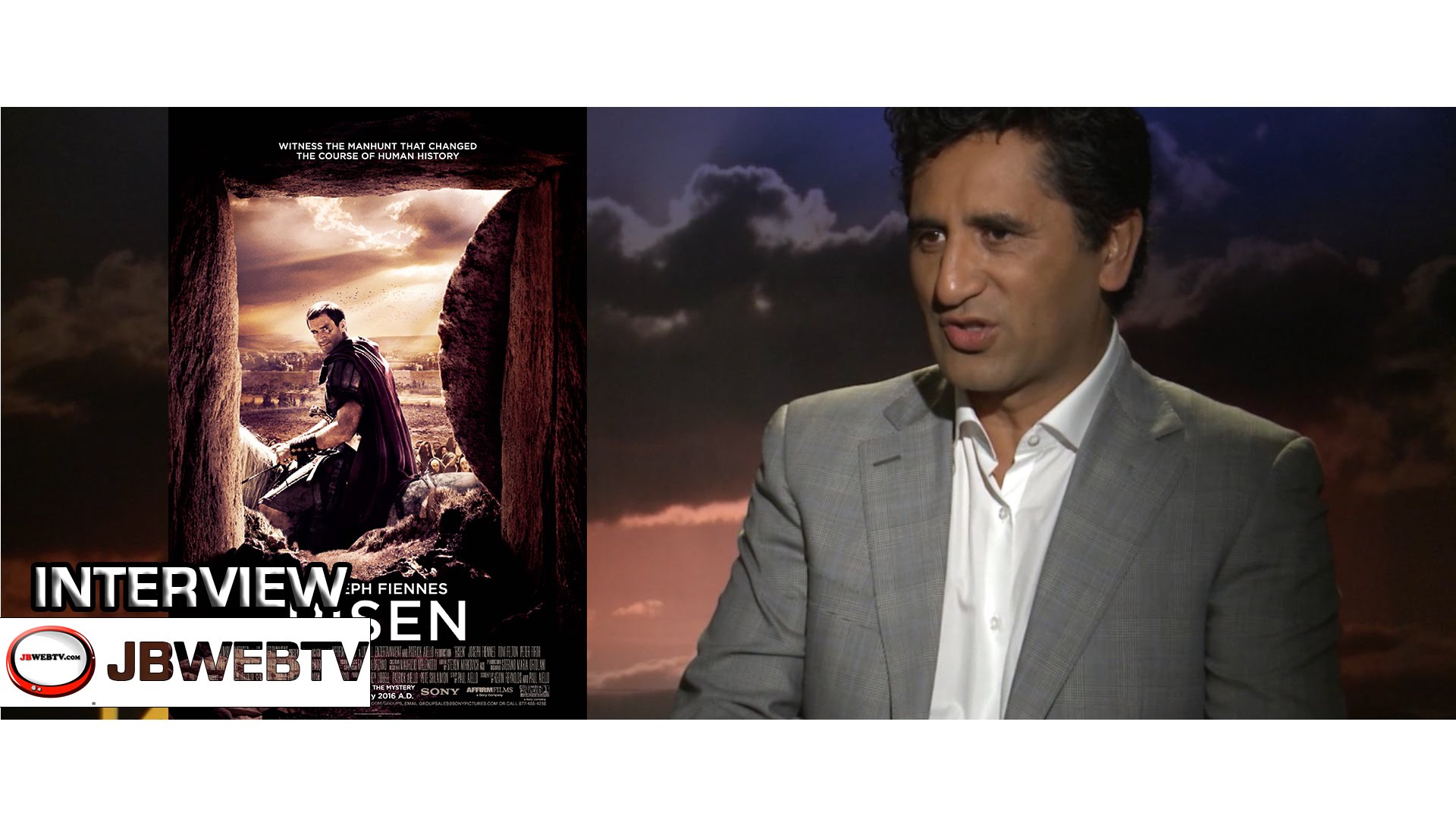 Description: A man in a suit sitting in front of a movie poster and a poster of a man in a suit.