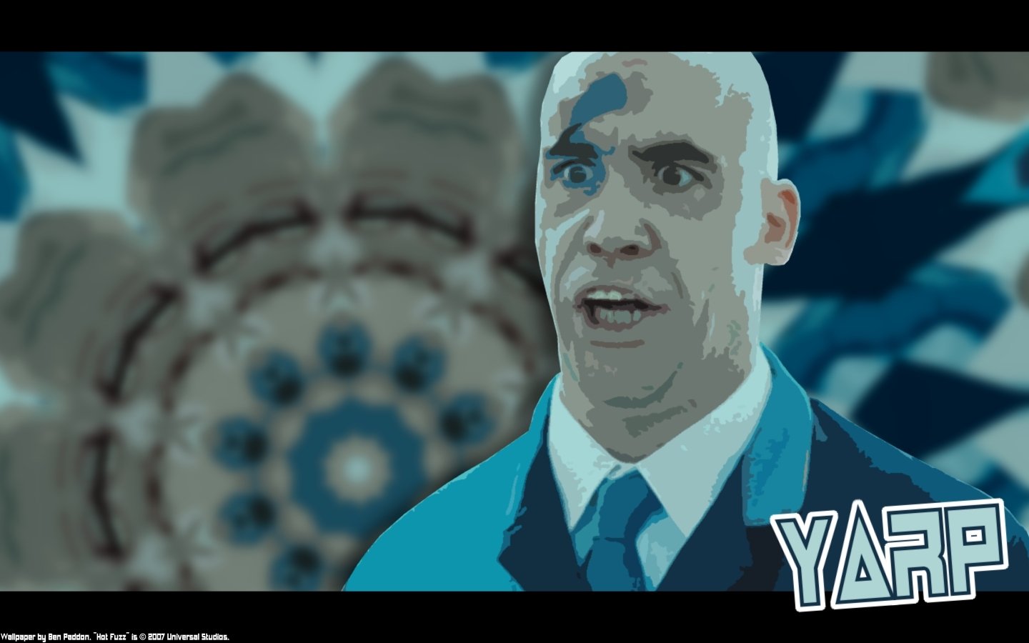 Description: A man in a suit and tie with a blue background and a blue and white flower pattern in the background.