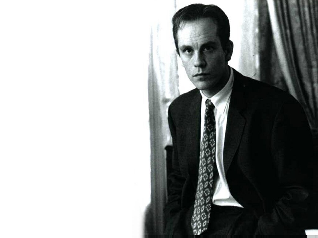 Description: A man in a suit and tie sitting in a chair in front of a window with curtains and a curtain.