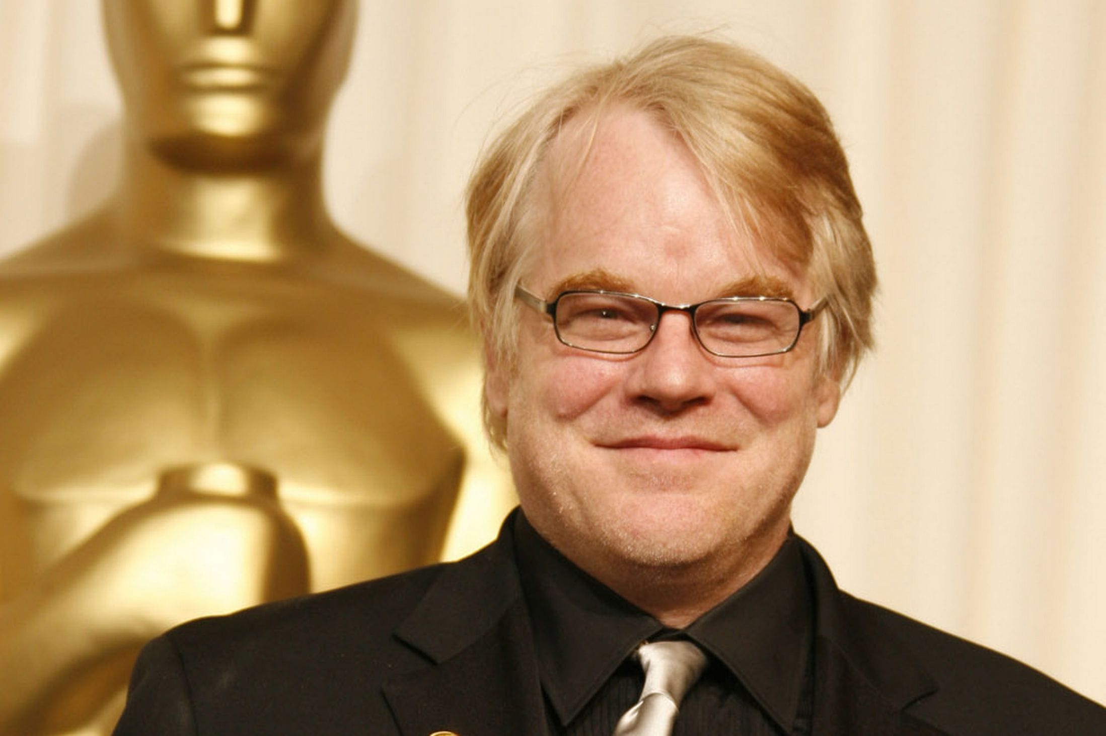 Description: A man in a suit and tie holding a golden award in front of a statue of a person wearing a suit.