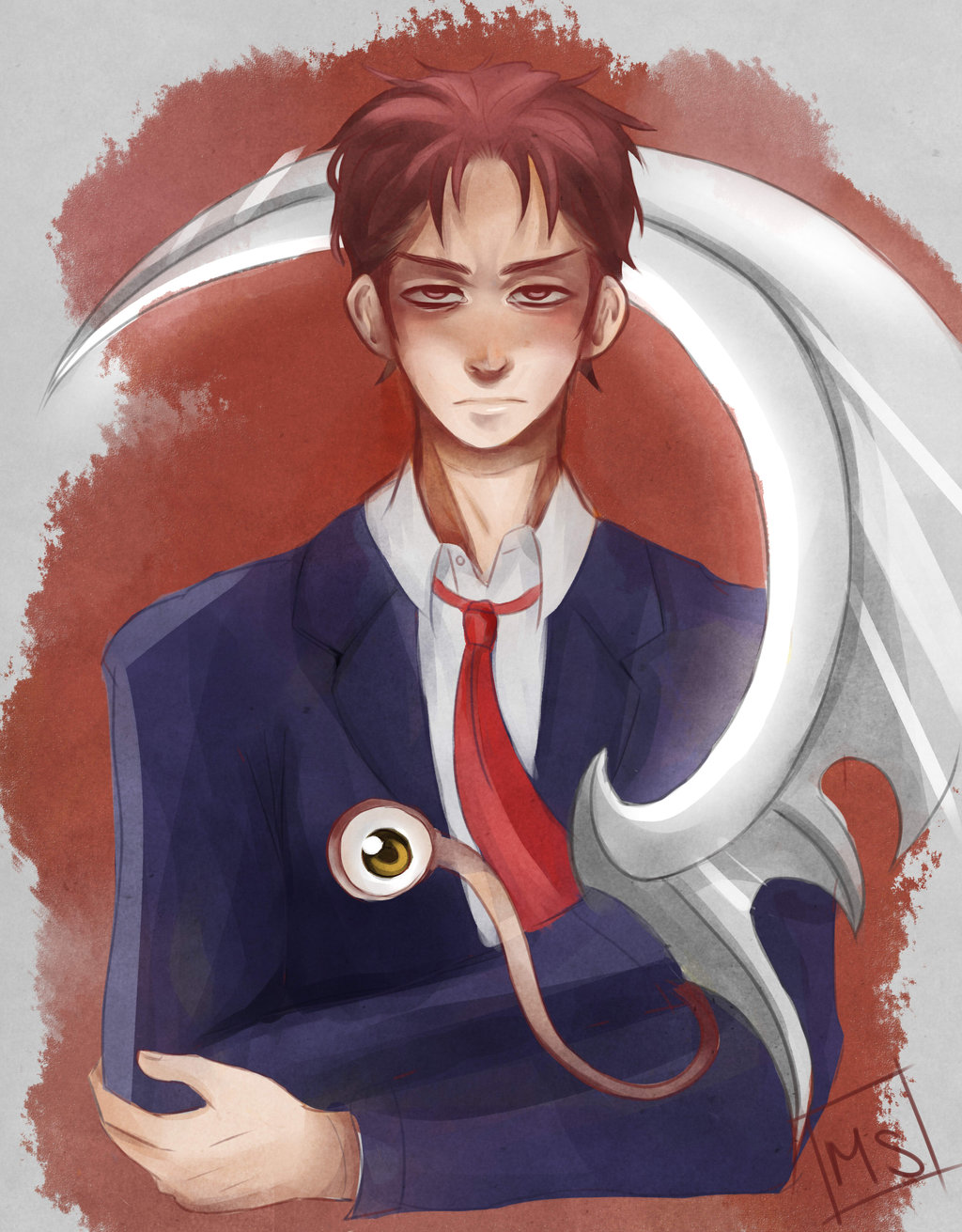 Description: A man in a suit and tie holding a large white object in his hand with a red tie on.