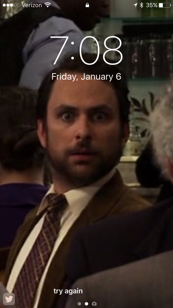 Description: A man in a suit and tie is looking at a cell phone screen with the time on it and the date on the screen.