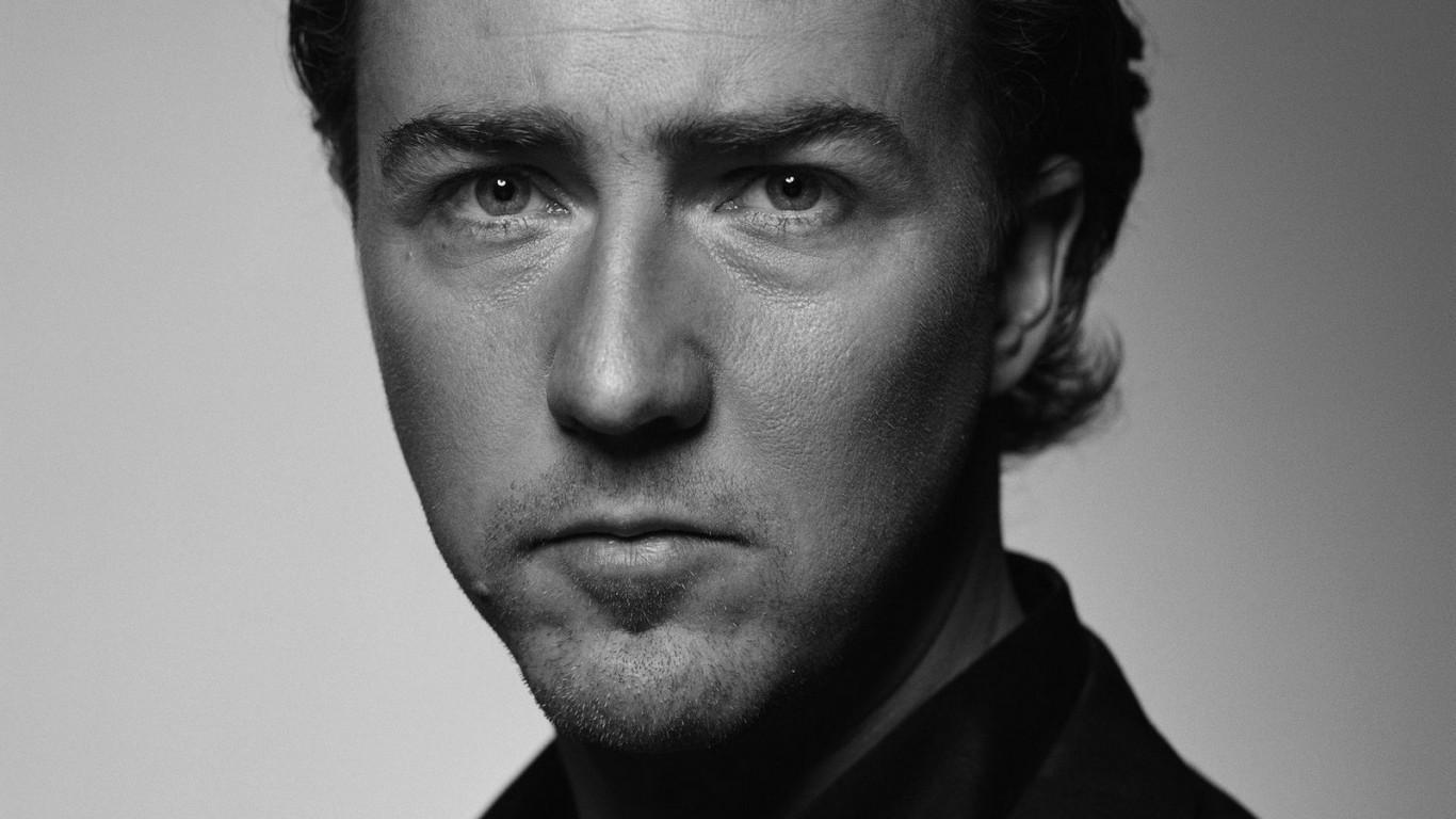 Description: A man with a suit and tie on posing for a picture in a black and white photo with a serious look on his face.
