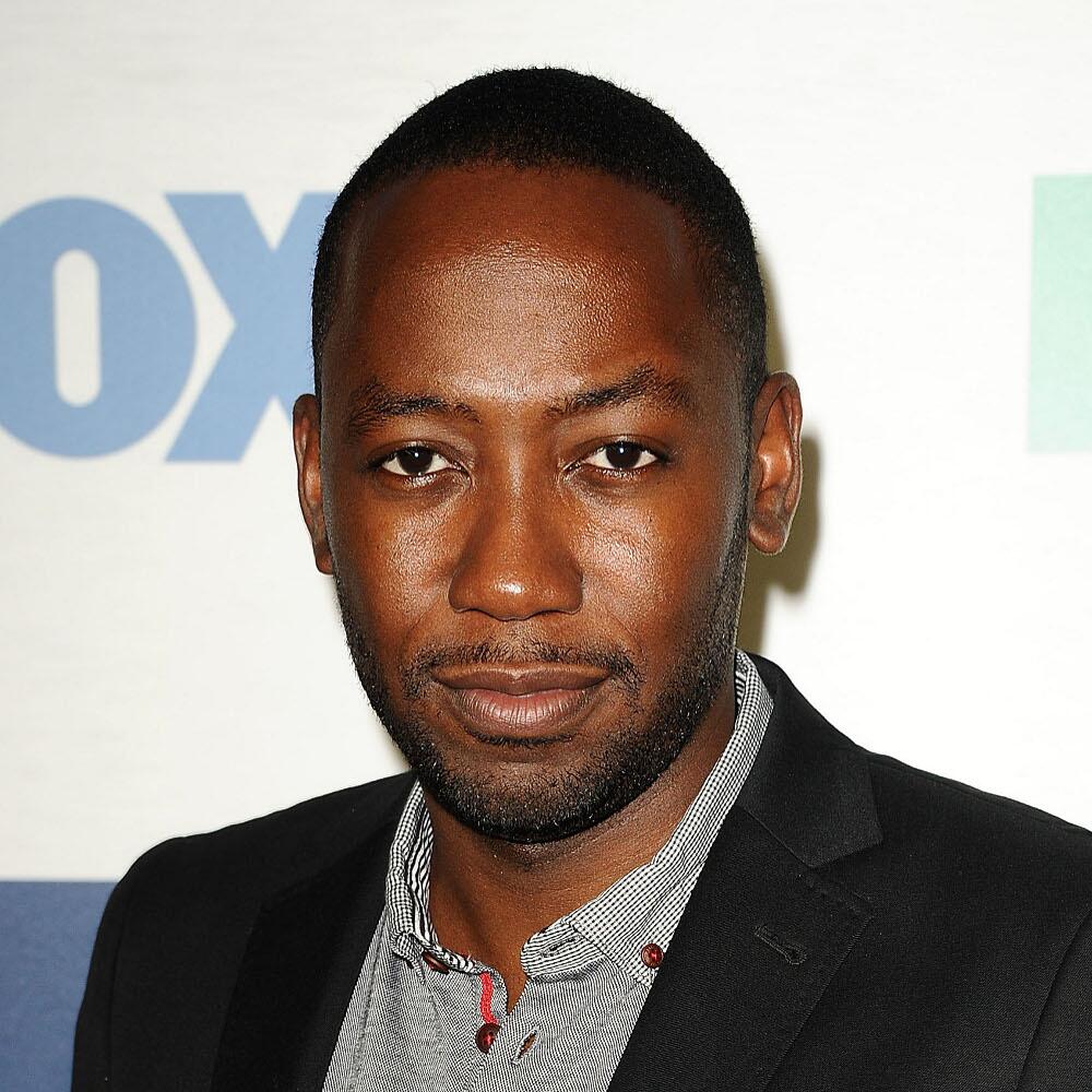 Description: A man in a suit and tie posing for a picture in front of a wall with a blue sign.