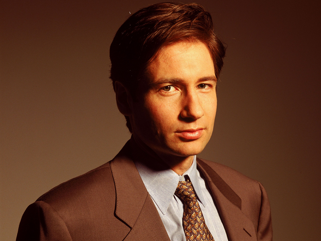 Description: A man in a suit and tie posing for a picture with a brown background and a brown background behind him.