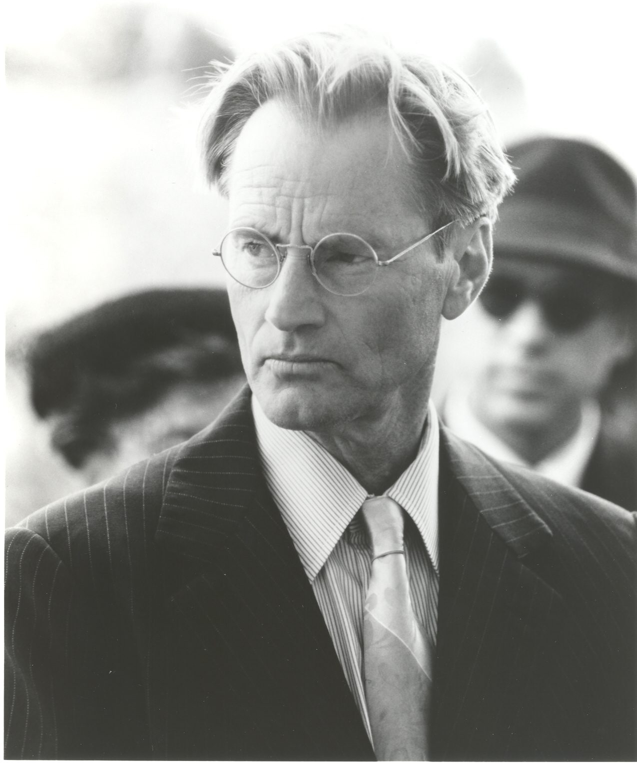 Description: A man in a suit and tie looking off to the side with a serious look on his face and a hat on his head.