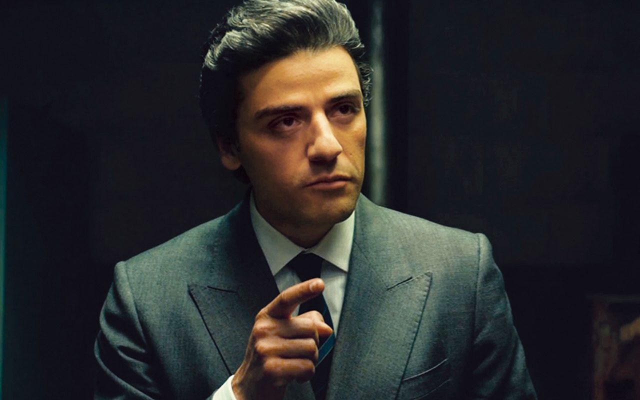 Description: A man in a suit and tie is looking at something in the mirror with a serious look on his face.