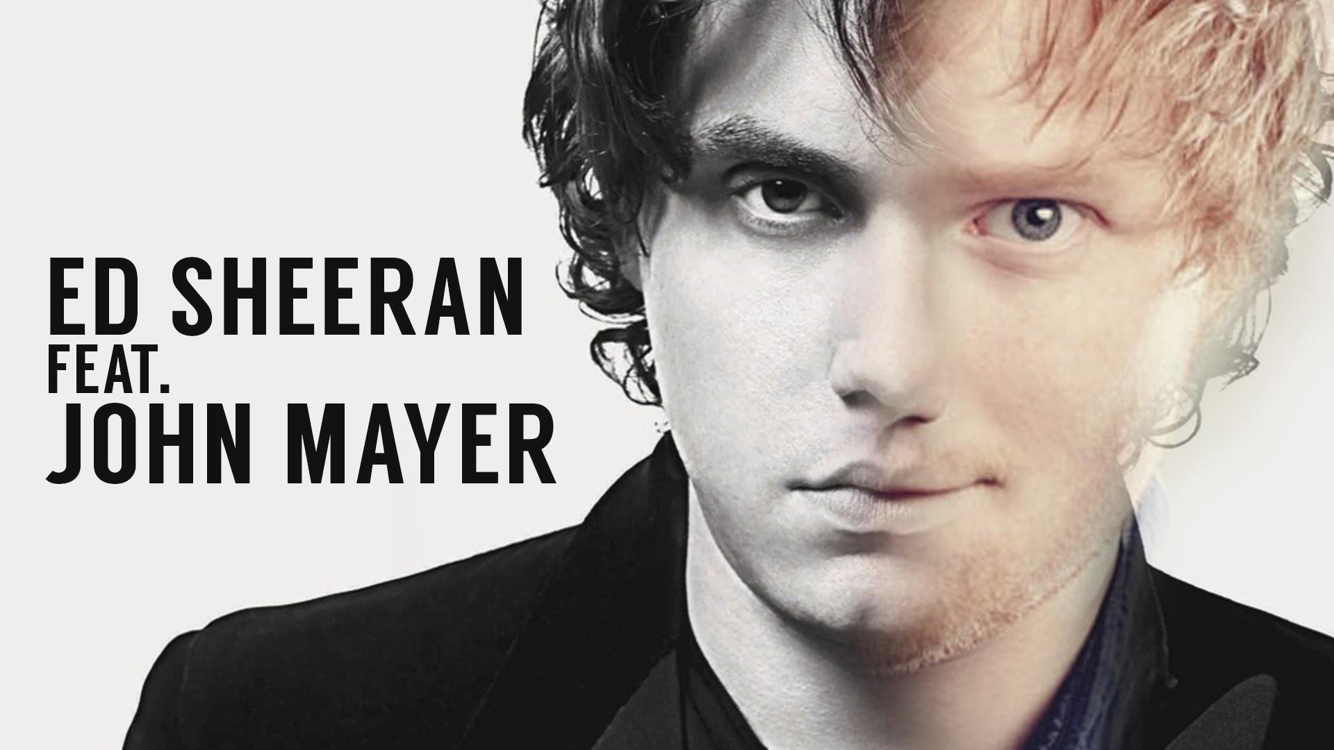 Description: A man with a suit and tie on a white background with a black and white photo of him and the words ed sheeran.