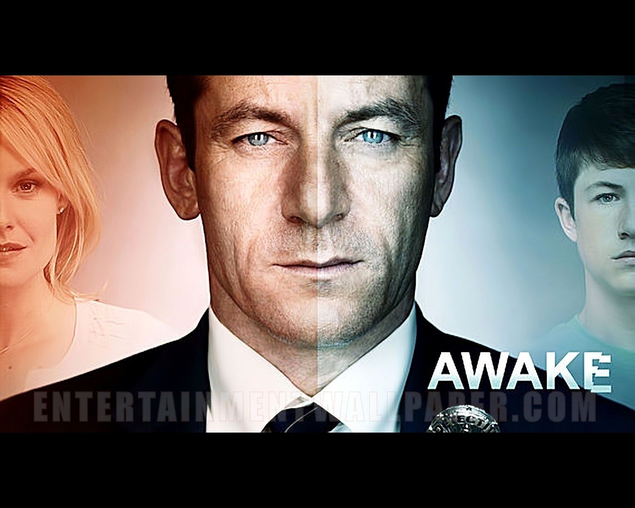 Description: A man in a suit and tie with a woman in the background and the words awake on the picture.