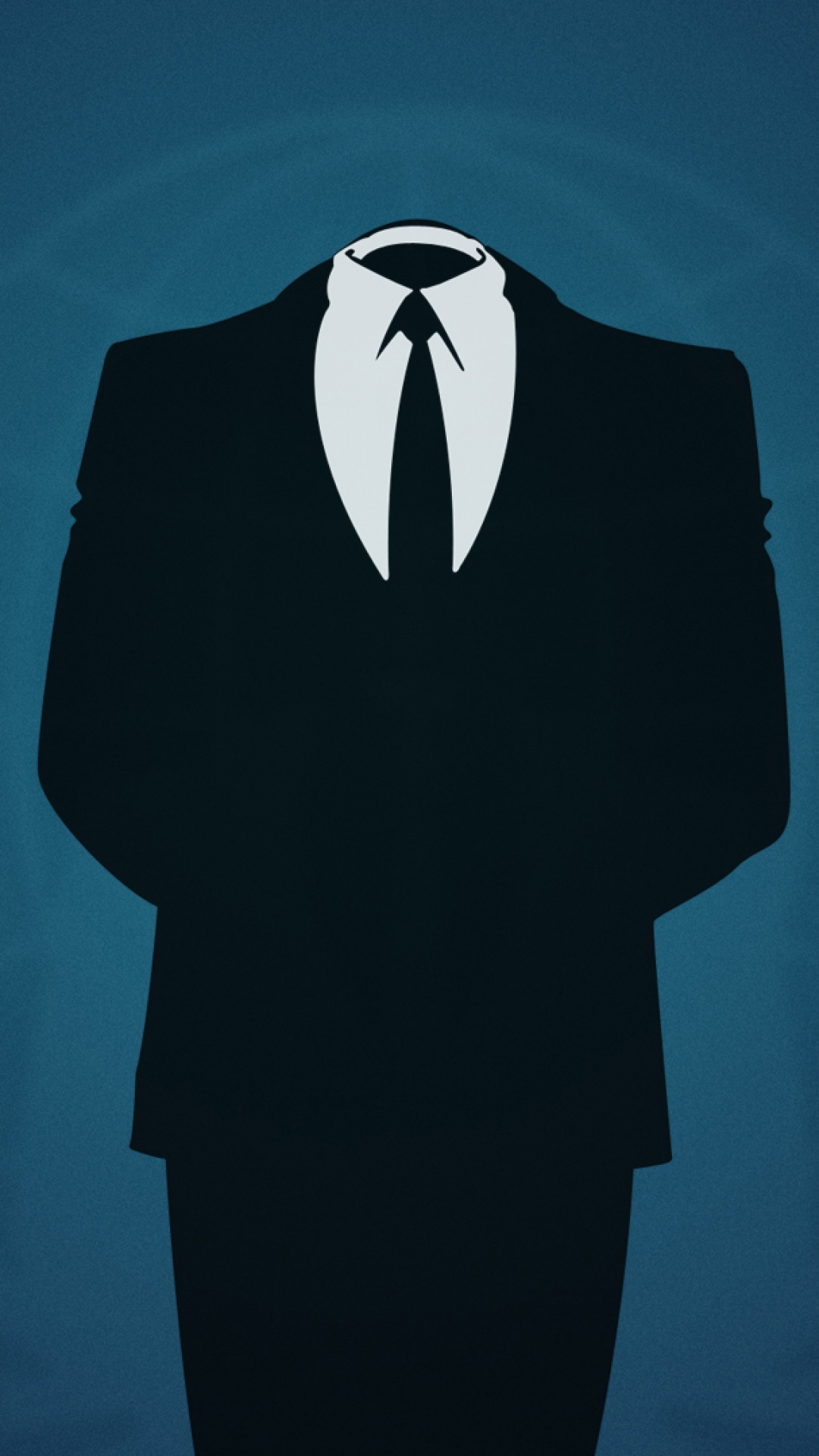 Description: A man in a suit and tie with a white collar and black tie on his head and a blue background.