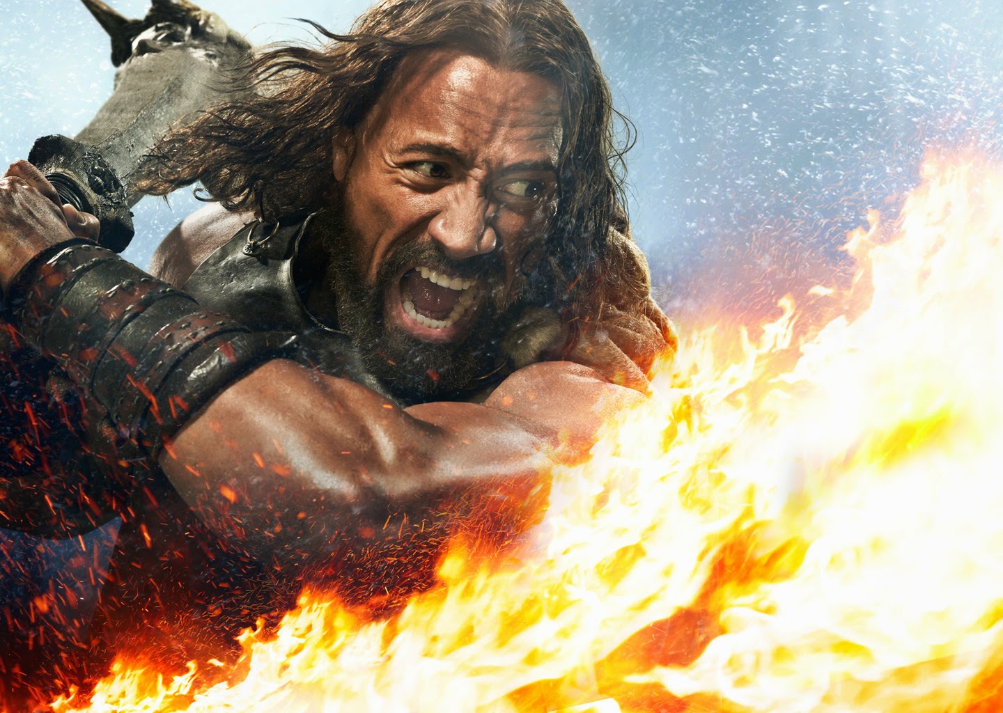 Description: A man with a sword in front of a fire and water background with a wolf on his shoulder and a demon on his shoulder.