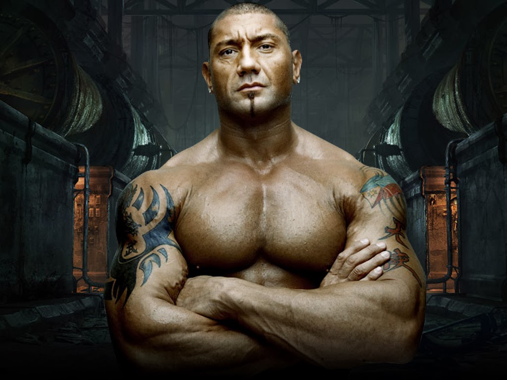 Description: A man with a tattooed arm and chest standing in a room with pipes and pipes behind him.