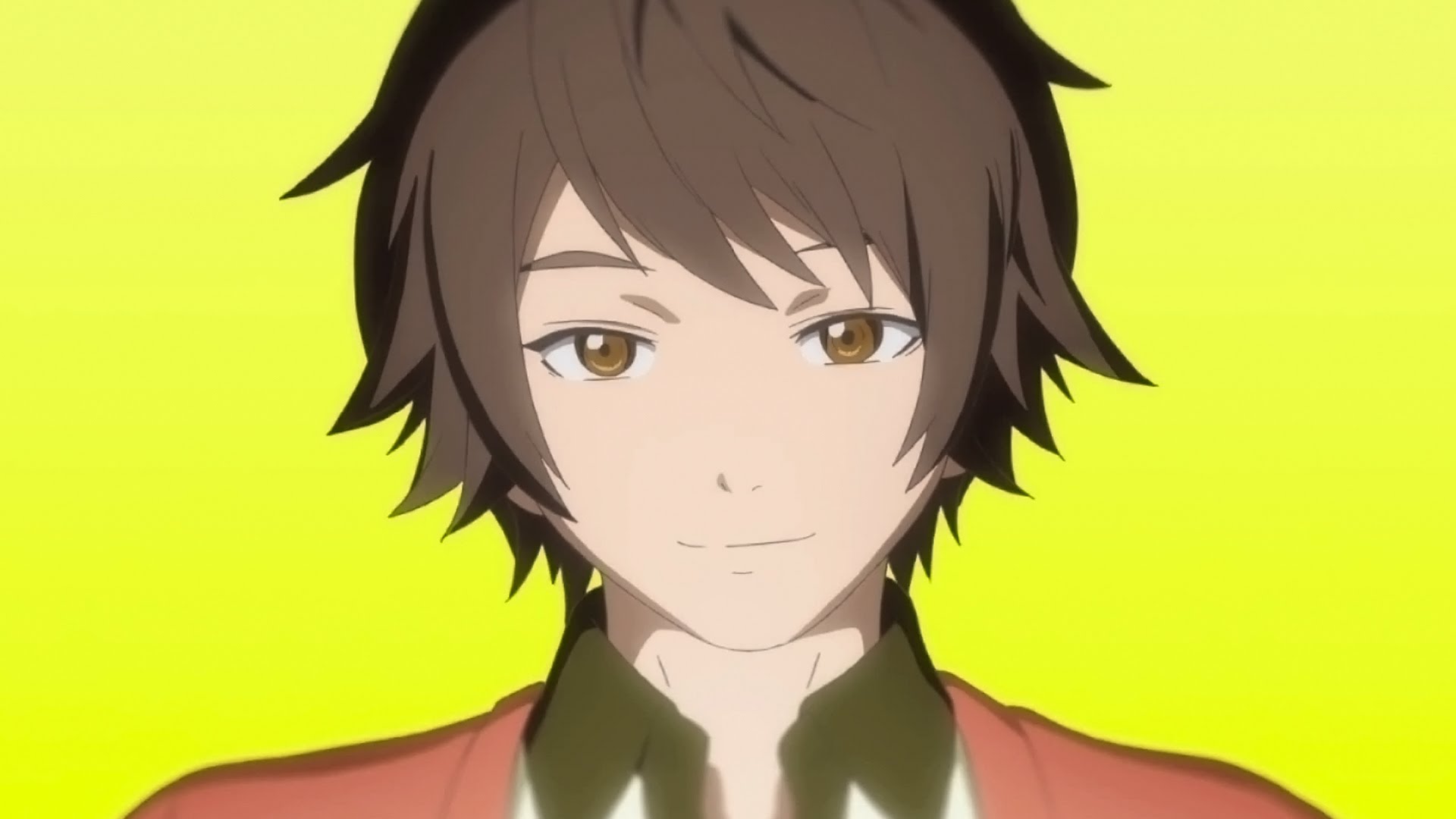 Description: A man with a tie and a suit on a yellow background with a yellow background and a yellow background.
