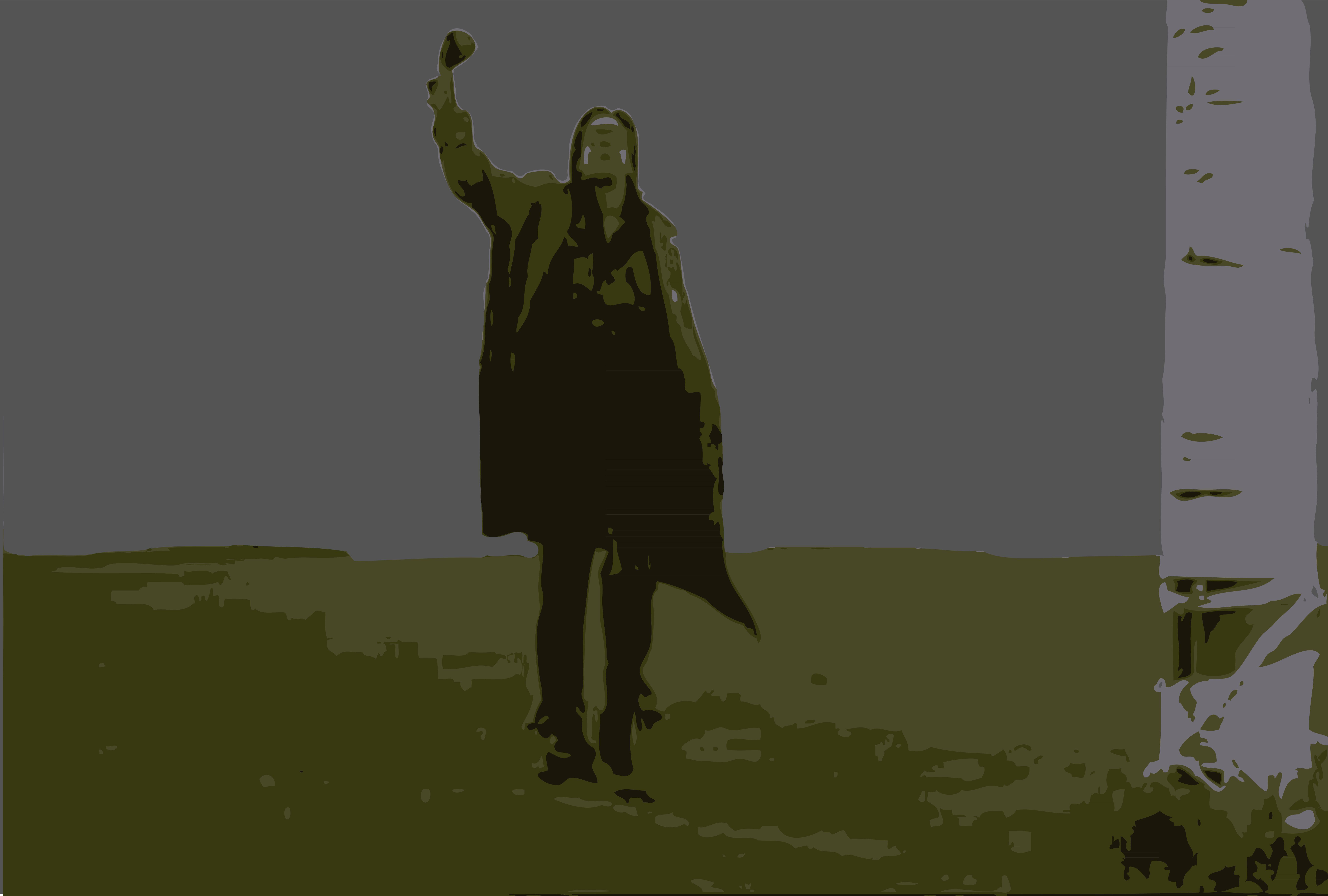 Description: A man standing next to a tree holding a frisbee in his hand and a tree in the background.