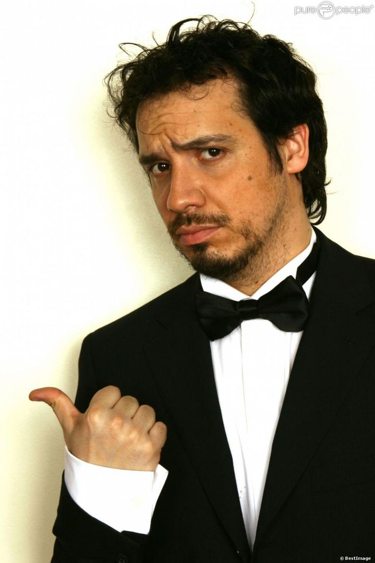 Description: A man in a tuxedo pointing at something with his finger up in a funny pose with a white background.