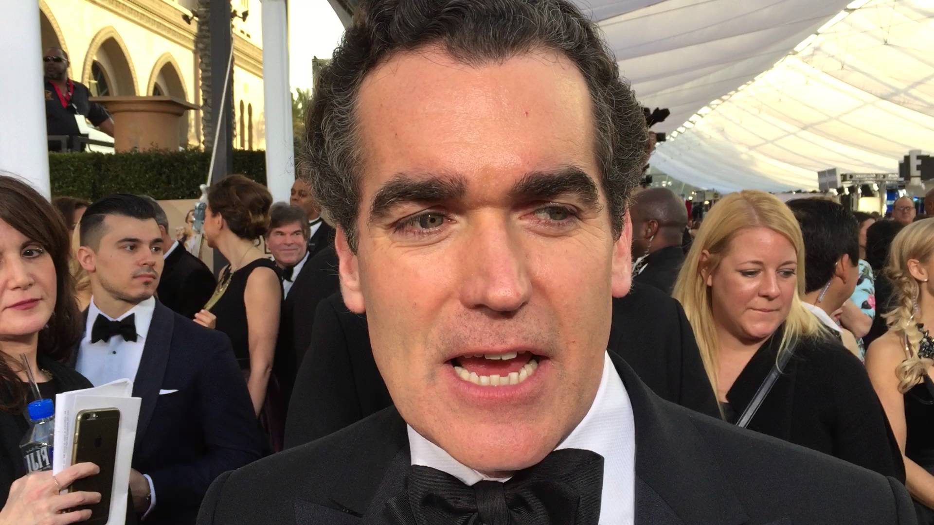 Description: A man in a tuxedo is making a face at the camera with a surprised look on his face.