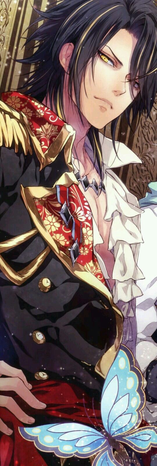 Description: A man in a uniform with a butterfly on his shoulder and a butterfly on his shoulder.