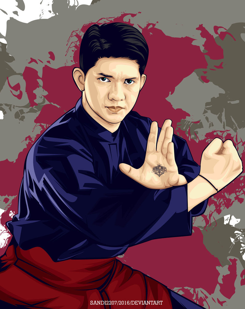 Description: A man with a ring on his hand making the vulcan sign with his hand and a red background with a grungy pattern.