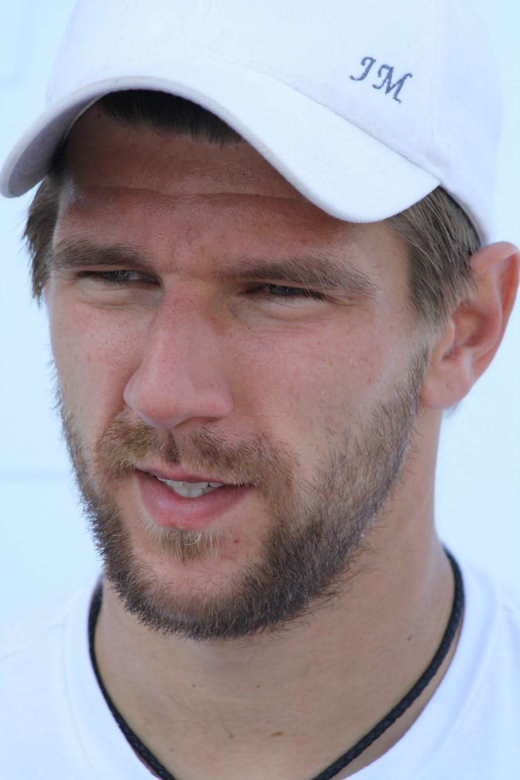 Description: A man with a white hat and a white shirt is looking at something while he is wearing a white cap.