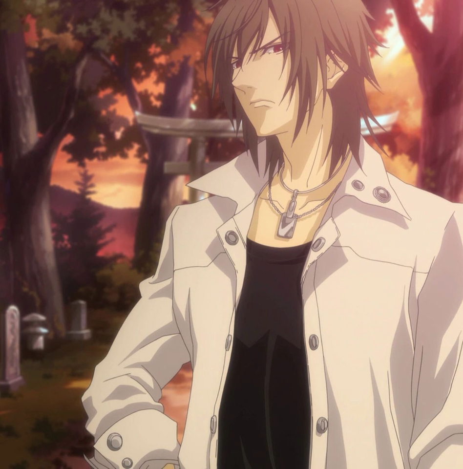 Description: A man in a white jacket standing in front of a forest with trees and a cross on it's chest.
