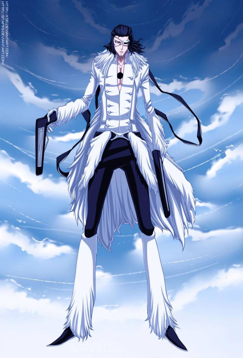 Description: A man in white is standing in the sky with a sword in his hand and a sword in his hand.