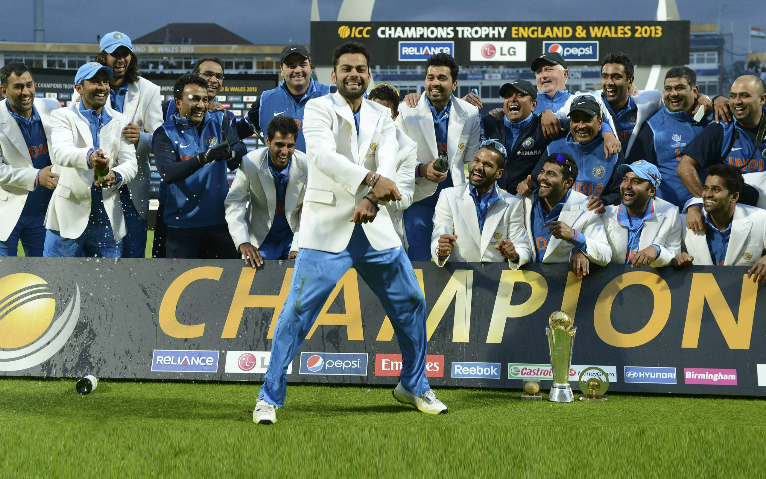 Description: A man in a white suit and blue pants dancing in front of a group of men in white suits.