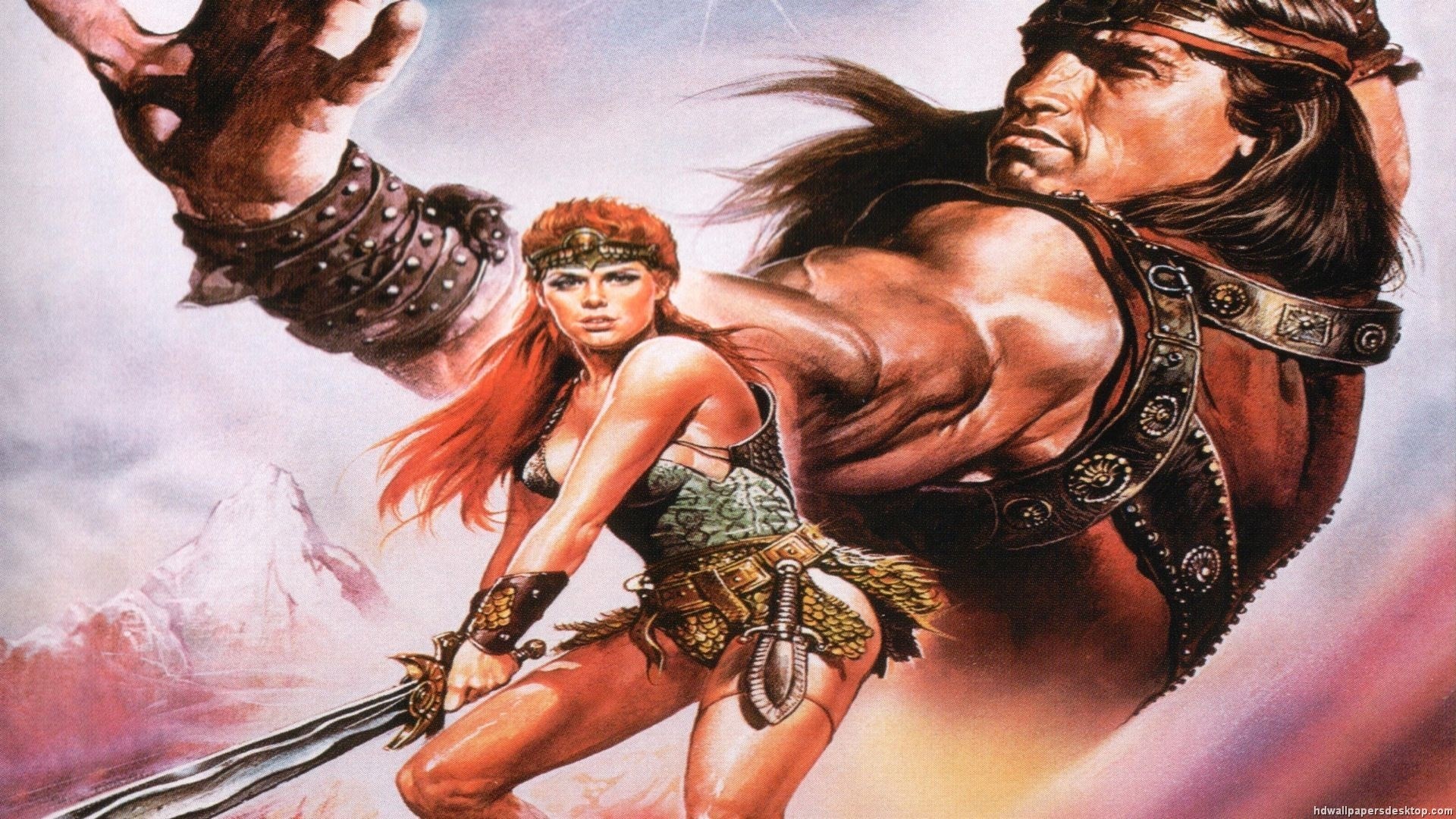 Description: A painting of a man and a woman in a battle scene with a sword and a demon on the other side.