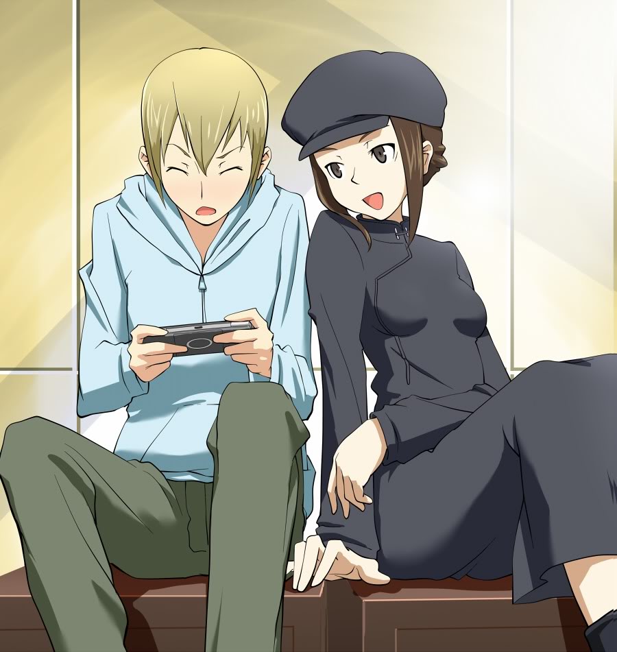 Description: A man and a woman sitting on a bench looking at a cell phone together.