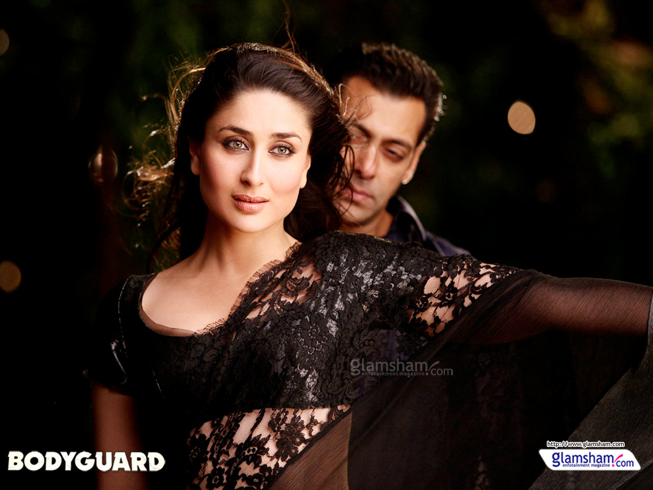 Description: A man and a woman posing for a picture together in a black dress and black lace top with a black shawl.