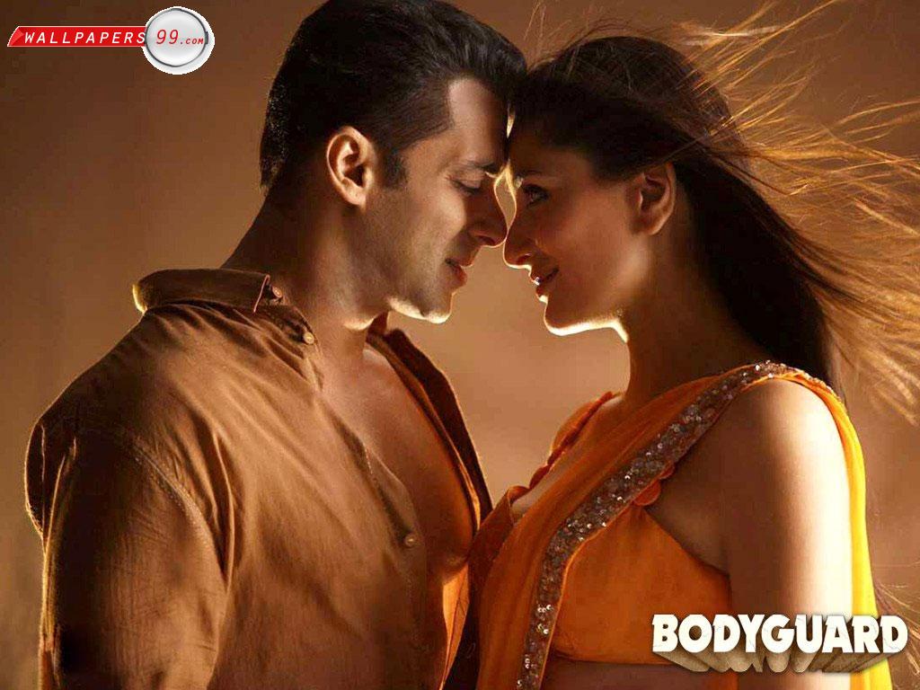 Description: A man and woman are standing together in front of a brown background with the words bodyguard on it.