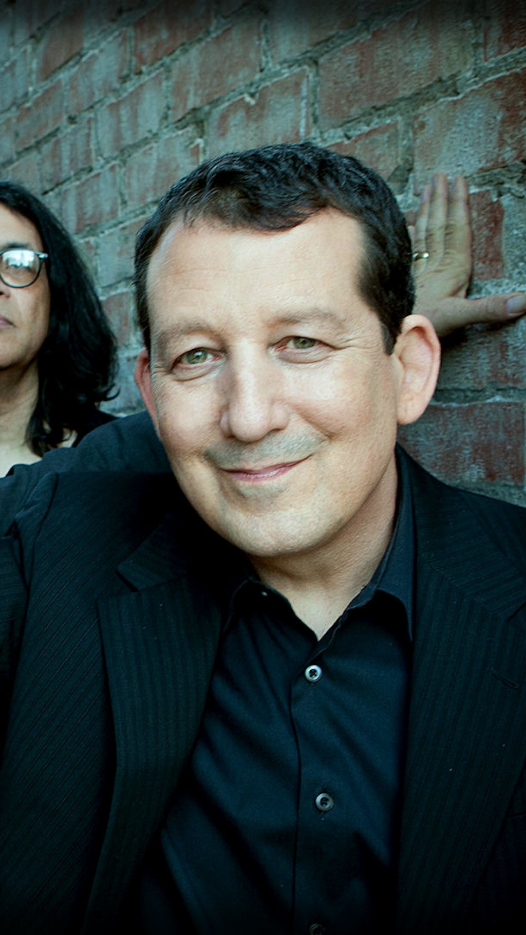 Description: A man and woman standing next to a brick wall with a brick wall behind them and a brick wall behind them.