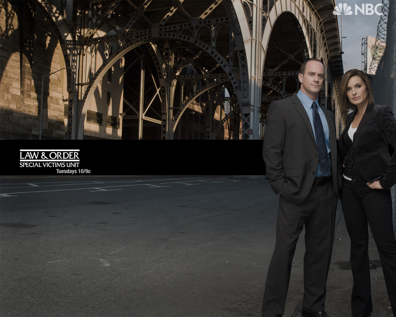 Description: A man and woman standing in front of a building with a bridge in the background and a sky background.