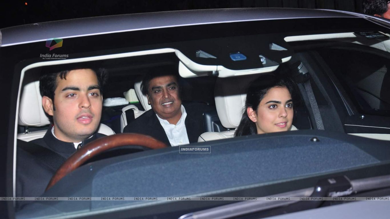 Description: A man and a woman sitting in a car with a man in the back seat looking at the camera.