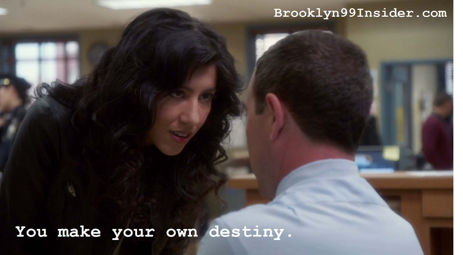 Description: A man and a woman talking in a classroom with a quote on it that says you make your own destiny.