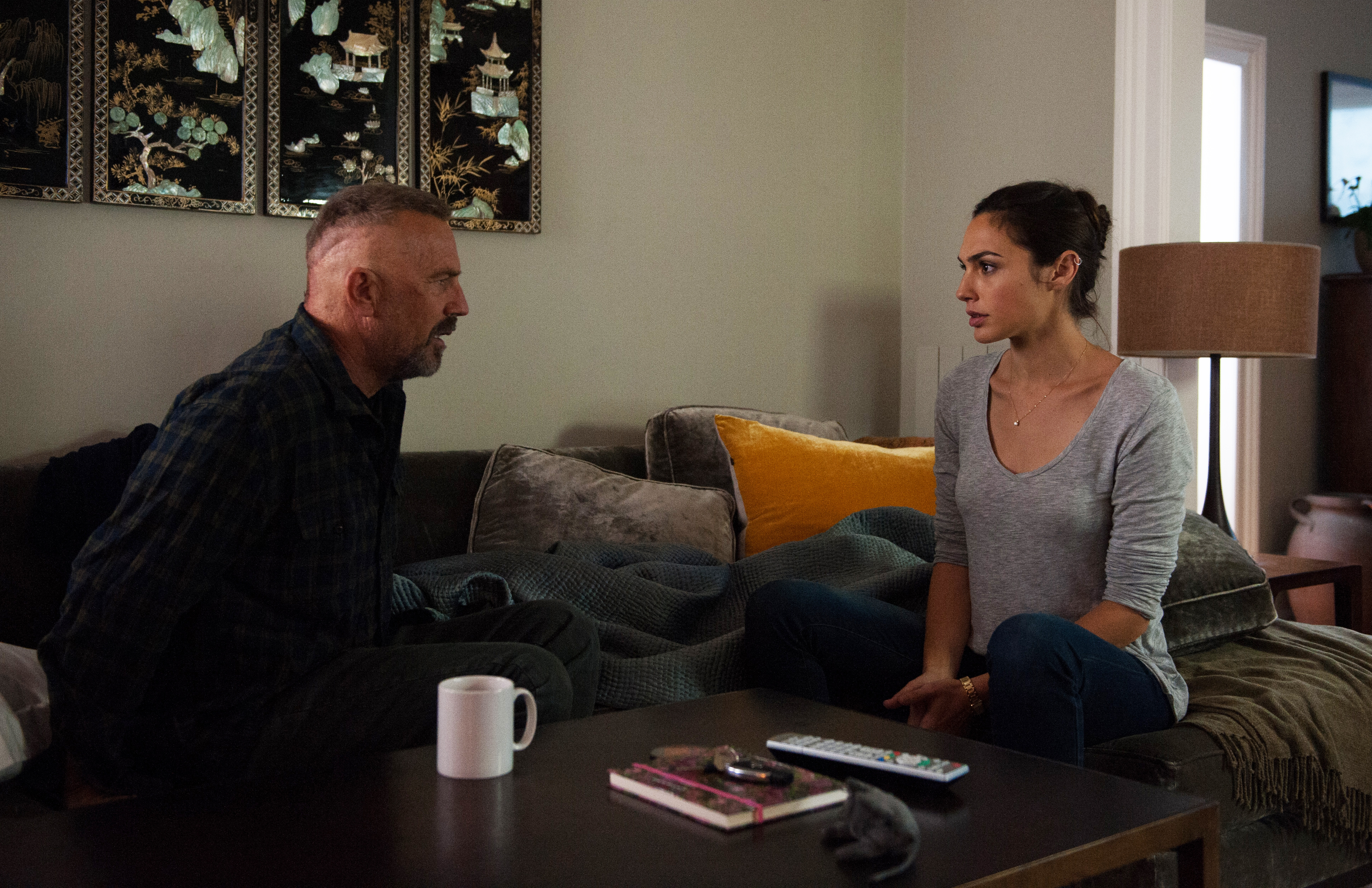 Description: A man and a woman sitting on a couch talking to each other in a living room with a coffee table.