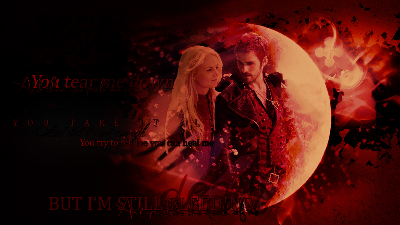 Description: A man and a woman standing in front of a full moon with a message below it that says.