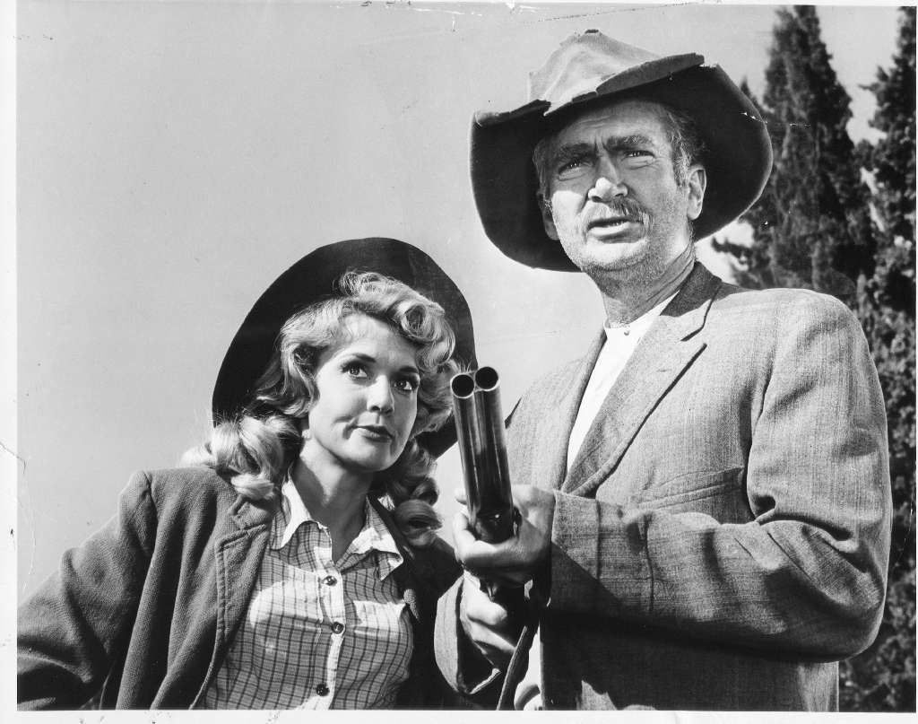 Description: A man and woman wearing hats and holding a gun in their hands.