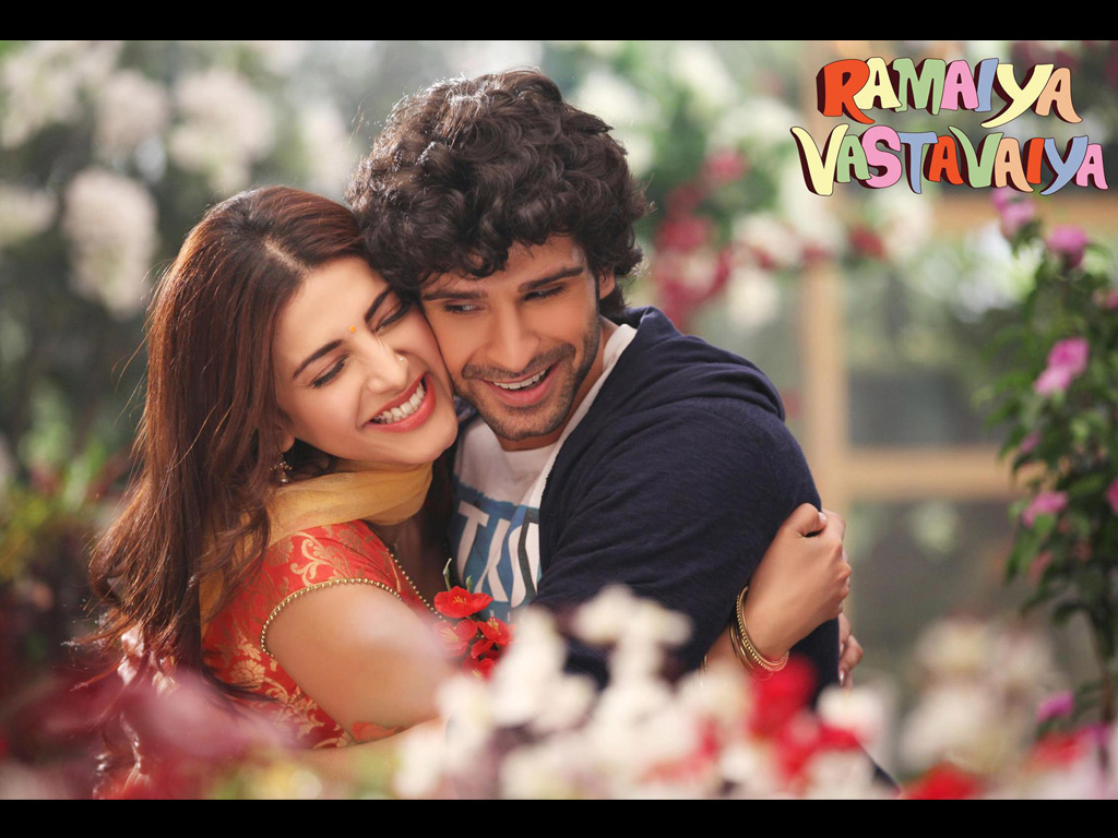 Description: A man and woman hugging each other in front of flowers and a sign that says ramaya vestraalaya.