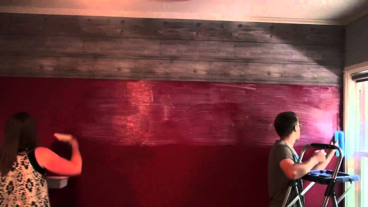 Description: A man and a woman painting a wall with red paint and a red chair in front of them and a red wall behind them.