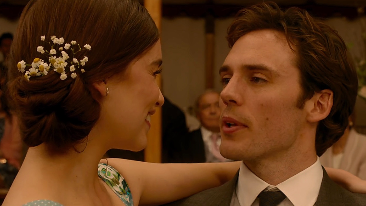 Description: A man and a woman are standing together in a room with people in the background and one is holding the other.