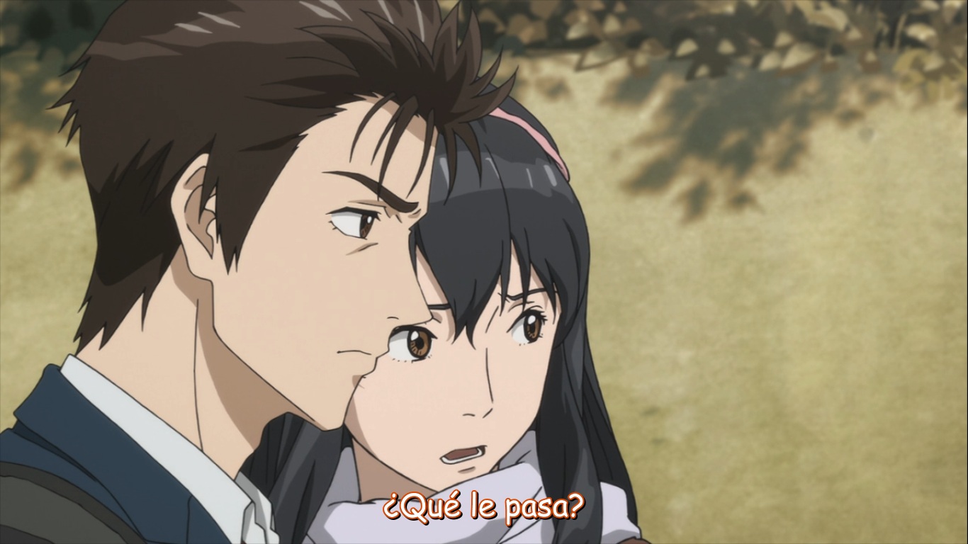Description: A man and a woman are staring at each other in a cartoon scene with a tree in the background.