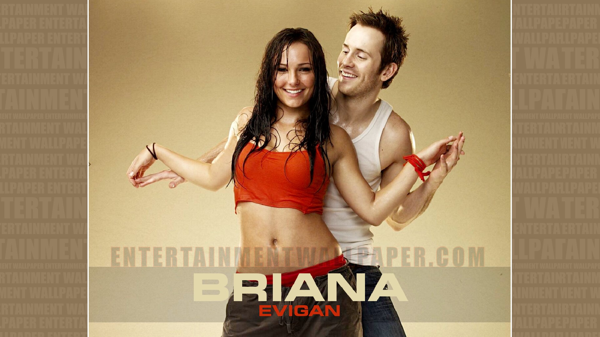 Description: A man and a woman are posing for a picture together in a studio with the caption aria emgan.