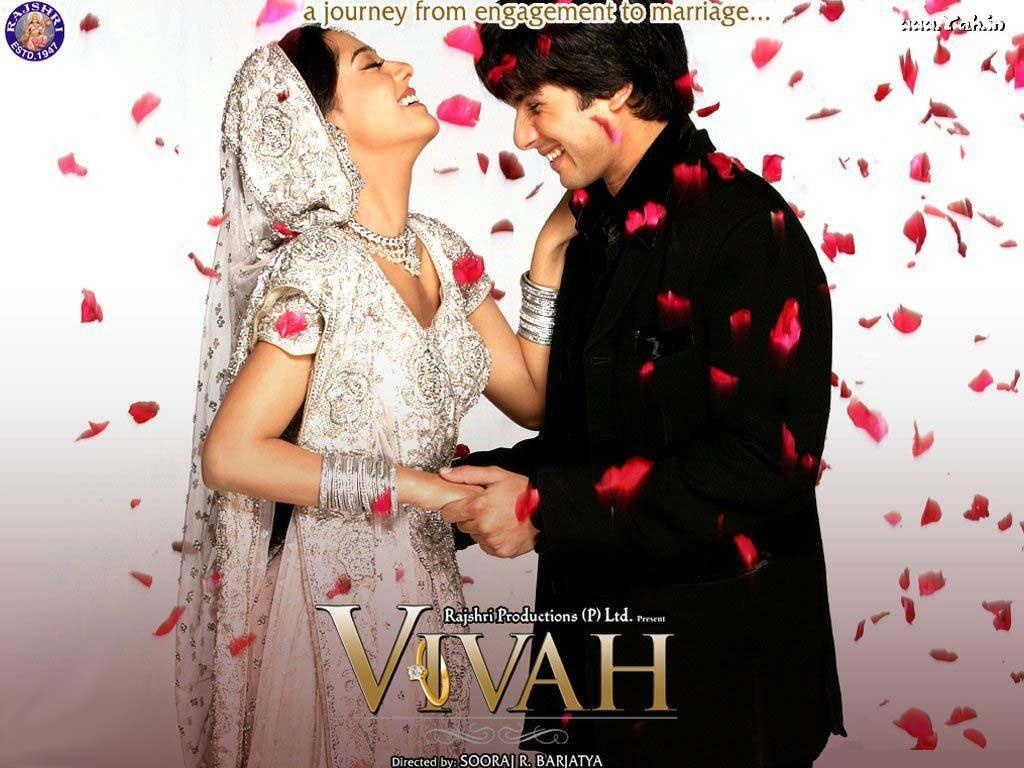 Description: A man and woman standing next to each other in front of a wall with petals on it and a man in a black suit.