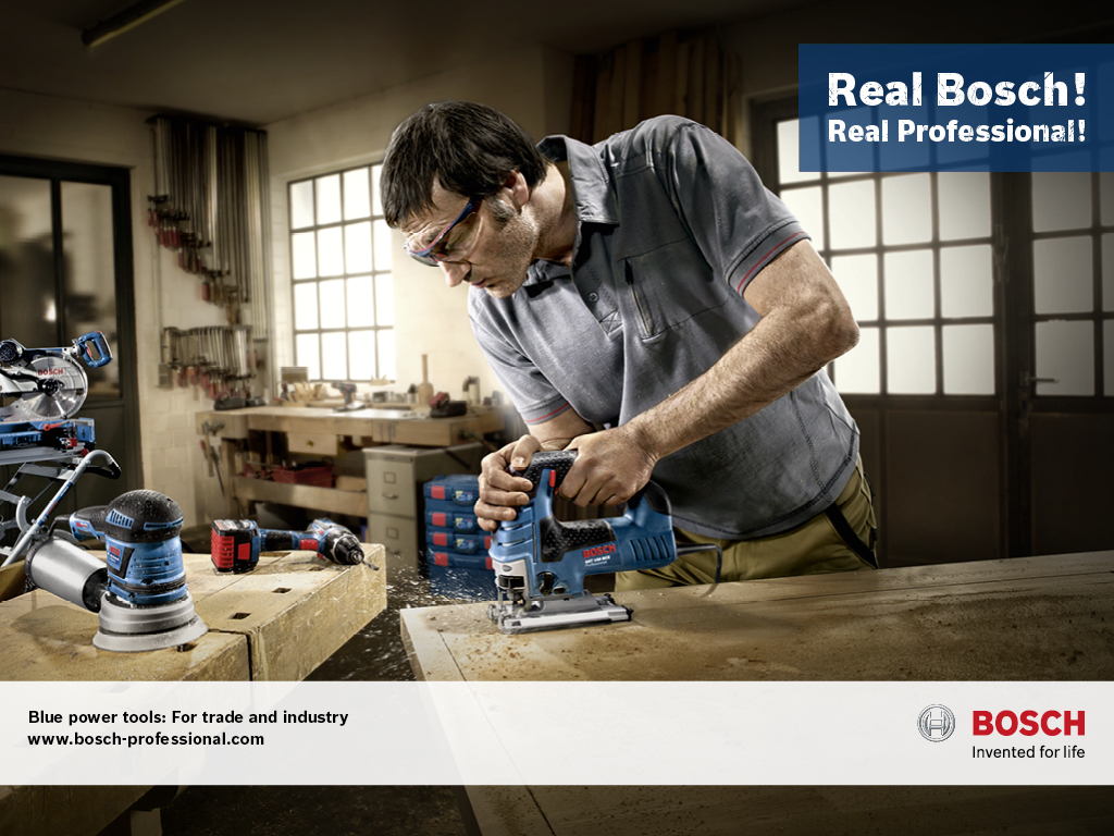 Description: A man working on a piece of wood with a driller and a drill gun in his hand and a tool on the table.