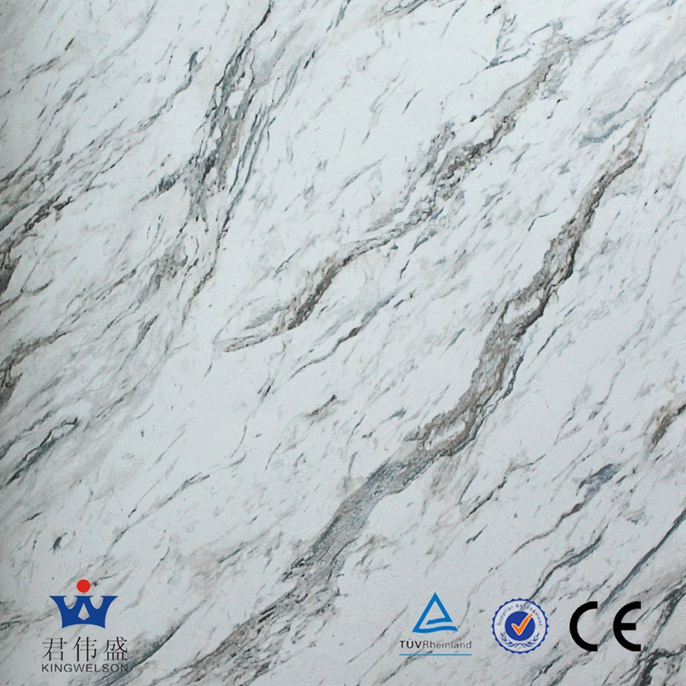 Description: A white marble wall with a black and white design on it and a blue and white sign that says china.