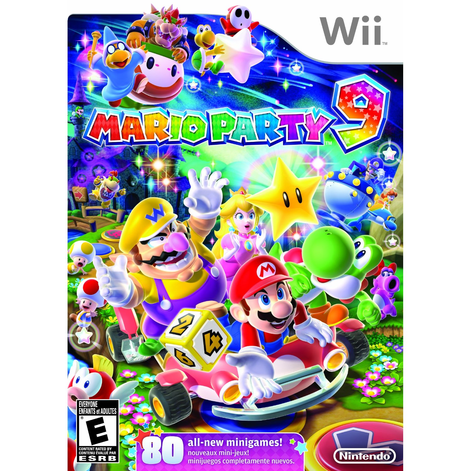 Description: A nintendo wii game with mario party 5 characters on it's cover and mario kart and luigi kart.