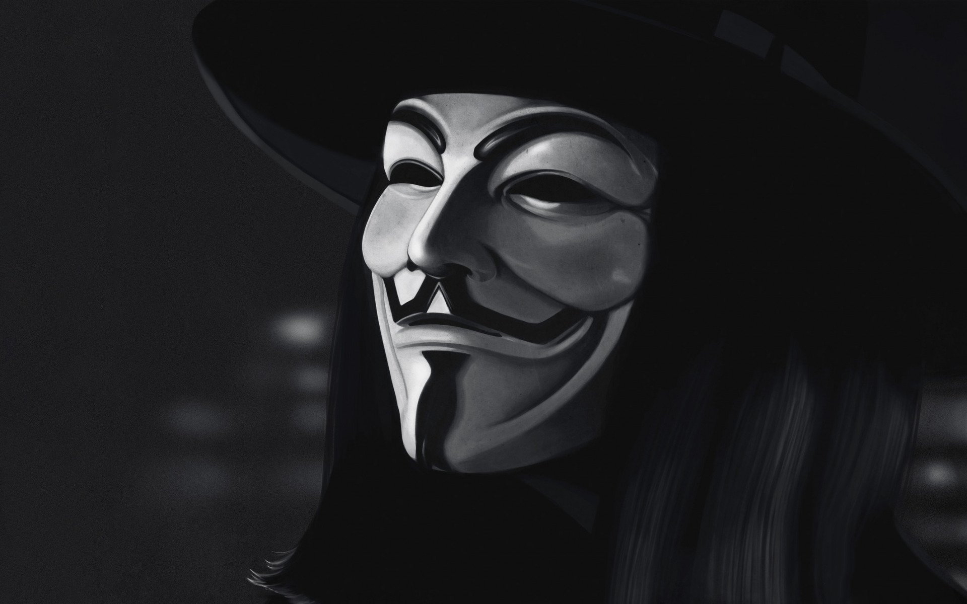 Description: A man wearing a mask and a hat with long hair and a black hat on his head.